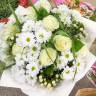 Букет "Белый Ангел" - отличный летний букет. В нем мы используем белые розы сорта "Аква" 60 см, а так же свежие хризантемные ромашки.